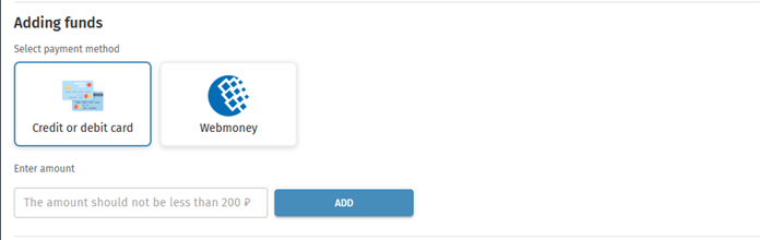 Click Add and a Paymaster window will open. Enter your payment data and complete the payment. The money will be added to your account balance after a while.