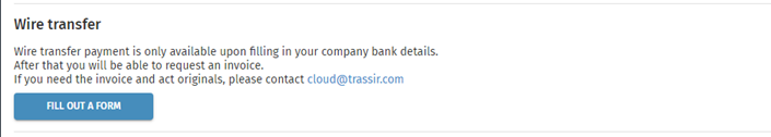 There is My balance link at the upper right of the TRASSIR Cloud window, by which the current account state is represented. Click the link to go to the balance management page.