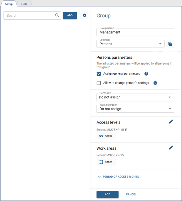 The person groups with the Setup right enabled can create and edit the person groups, as well as persons in these groups.