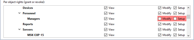 If a person group has the View right, it will be displayed in the Personnel, Work Schedules and Access Levels tabs, but the Person and the Group settings editing function will not be available.