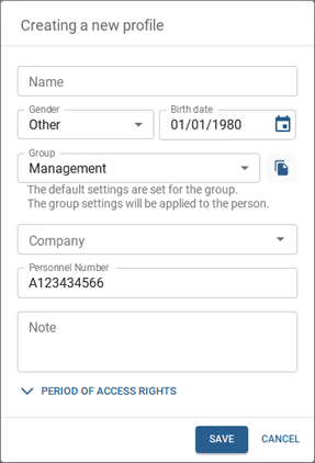 Set the Period of access rights for this person in order to set limit to use identifiers and access levels.