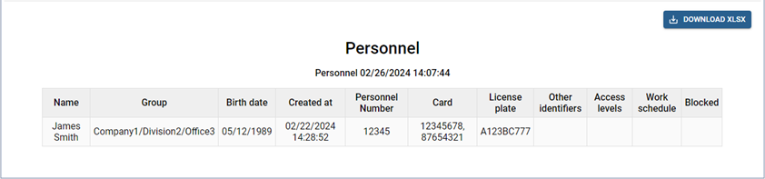 Set the Hide blocked persons flag to exclude persons with suspended identifiers and access levels from the report (see Personnel).
