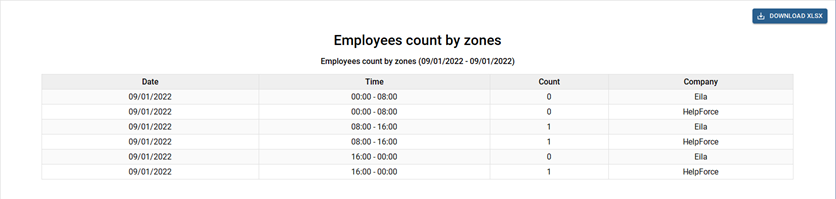 Employees count by zones - report on the location of people in zones, depending on the time of day.