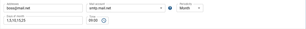 Month - specify, separated by commas, on which days of the month the report will be generated and sent out.