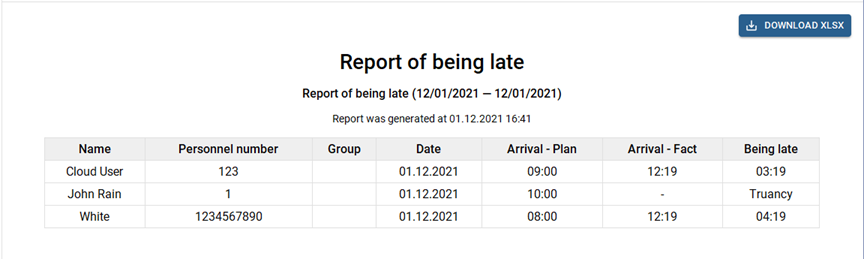 Report of being late - a report on employees arriving later than the arrival time, specified in the work schedule.