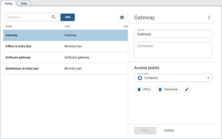 Gateway allows to set a rule for consecutive passage through several access points united in a gateway. To create a rule, indicate the device and the list of access points forming a gateway.