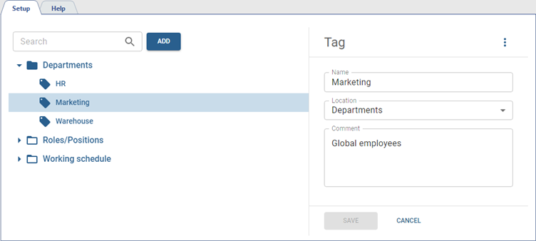 Tags are user-defined labels that allow you to classify and simplify the search for objects in the system. You can assign tags to devices, access points, and persons to quickly find the necessary elements, group them by various characteristics, and filter when displaying data.