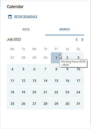 After creating a work schedule, you can check its timing for the week as well as for the month.