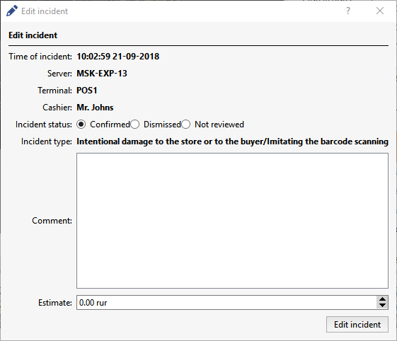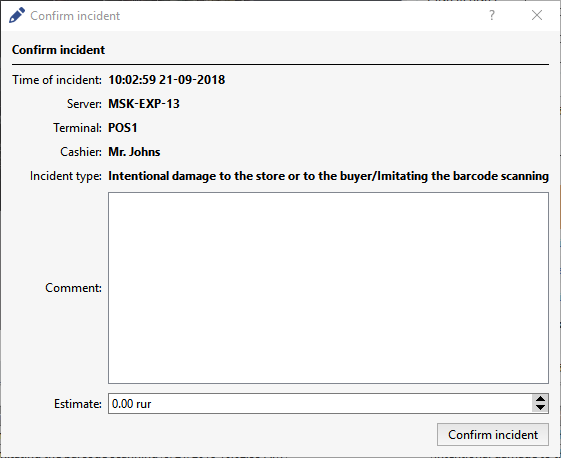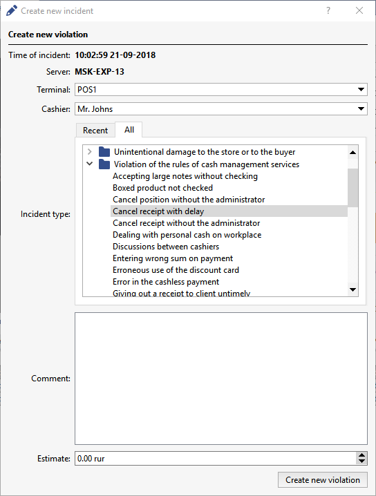 - Create new violation - This is an advanced version of confirming the incident. It lets you change the incident type, cashier name, and incident