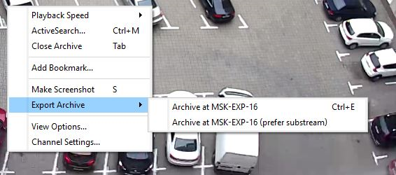 - Select the channel the archive fragment of which should be exported.