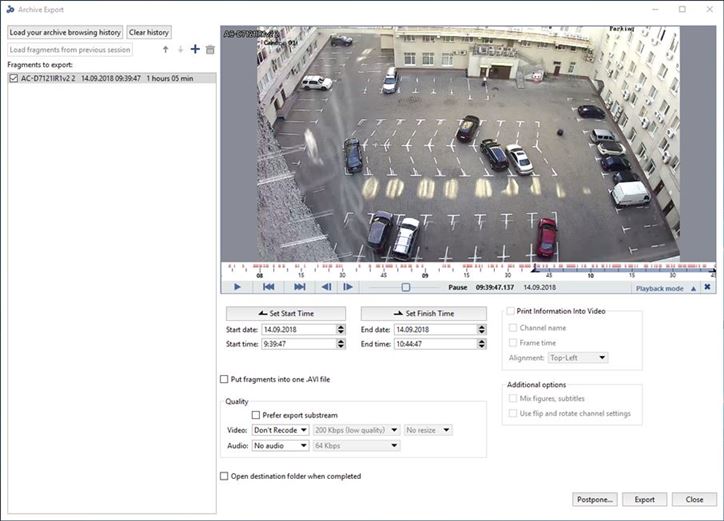 When exporting archive from the cloud cameras, the duration of a fragment depends on the TRASSIR Cloud camera tariff.
