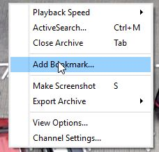 - Timestamp - The time where the bookmark is to be placed. The default value is the current position of the archive marker.