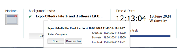 Enter the file name and select the file destination. The export will start immediately after the Save button pressing.