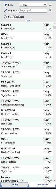 By default, the filter shows all current events for all device types. The maximum number of current events that can be displayed on the screen is 1000. The events can be displayed in two modes: