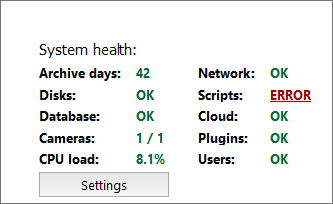 Cloud -Indicates if there have been errors when connecting to TRASSIR Cloud service.