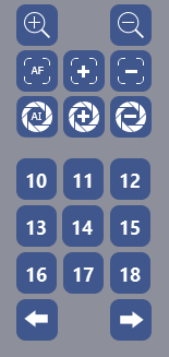 - 1, 2, ..., 9 – presets buttons. A preset is a saved camera position. A total of 9 presets can be created for a camera. Presets are created using the camera control menu.