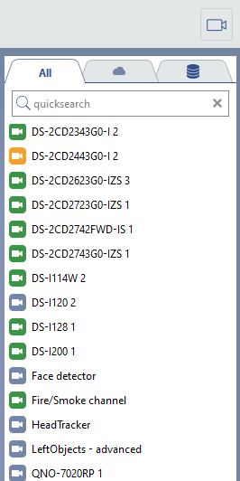 Switching the tabs you can display the channels connected to the server, all of them or cloud channels only. Besides, to find the name of the channel, enter it to the quick search field. Those satisfying the search conditions will remain in the list.