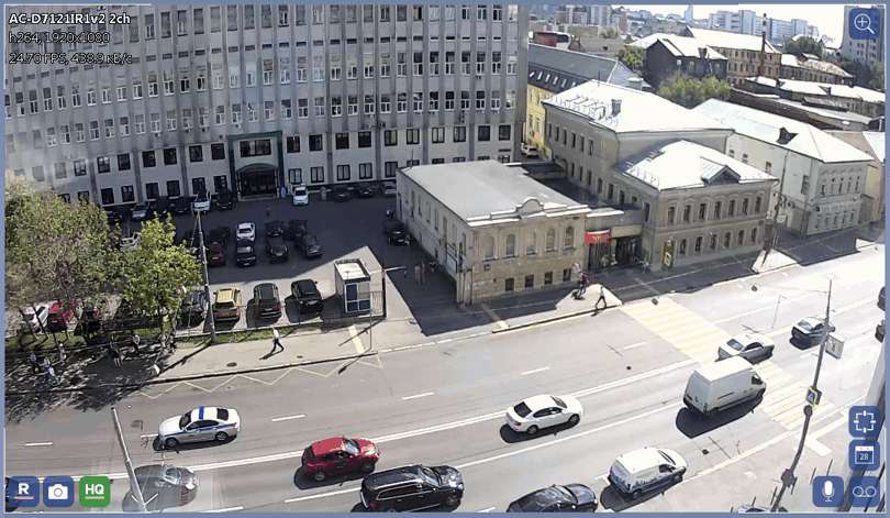 In addition to buttons, the upper right corner displays the camera name and some other information: codec, resolution, frames per second, and the current bit rate. The appearance and volume of information displayed is adjusted in the View options... menu.