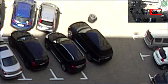 If Picture-in-picture mode at zoom is selected in the view options, you'll see the camera image in the right upper corner and the zoomed zone will be highlighted with a red rectangle. You can move the zoomed area on the image by moving the red rectangle.