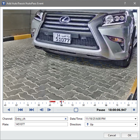 - Click OK to save the event in the AutoTRASSIR/AutoPass LOG.