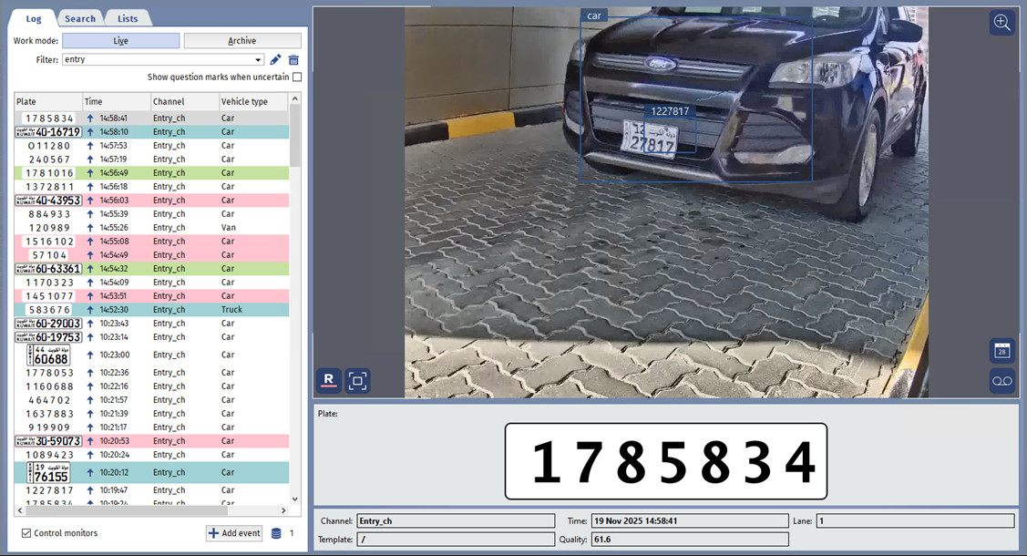 - The log of recognized license plate numbers.
