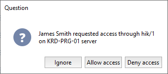 If the Access Control settings include the mode when the visitor's or any other person's passage should be confirmed by the near located operator, then, in this case, the passage confirmation window will be displayed on the operator screen.