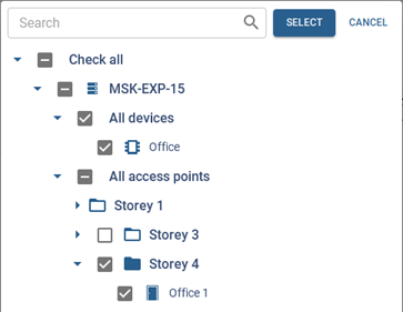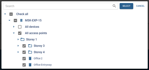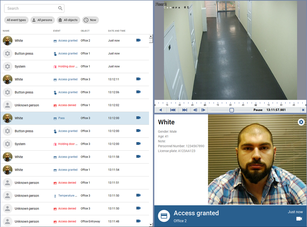 Use Access Control log filters to choose the event types, persons and object, the information on which will be displayed in the log: