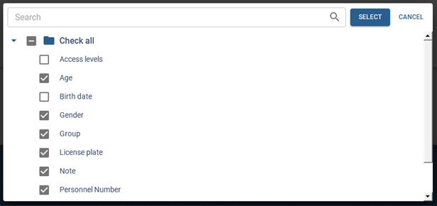 The list of fields that can be displayed on Access Control Event panel consists of main and additional person's fields. Read more in Administrator's Guide (see Creating a new person).