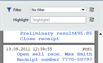 If there is a large number of terminals, the operator's job can become very difficult. You can use one or more filters to reduce the number of receipts displayed. These filters make it possible to display only the receipts that require the operator's attention. Creating a set of these filters makes it possible to quickly react to cashiers' common violations and theft schemes, and to quickly resolve disputes.