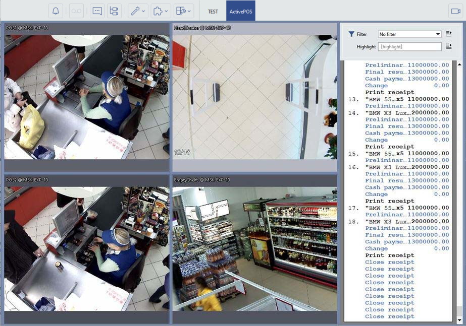 Point-of-sale operations are monitored in real-time using the ActivePOS plugin. To display the ActivePOS area, you must configure the video monitor view. The ActivePOS area contains the receipt list and associated events.