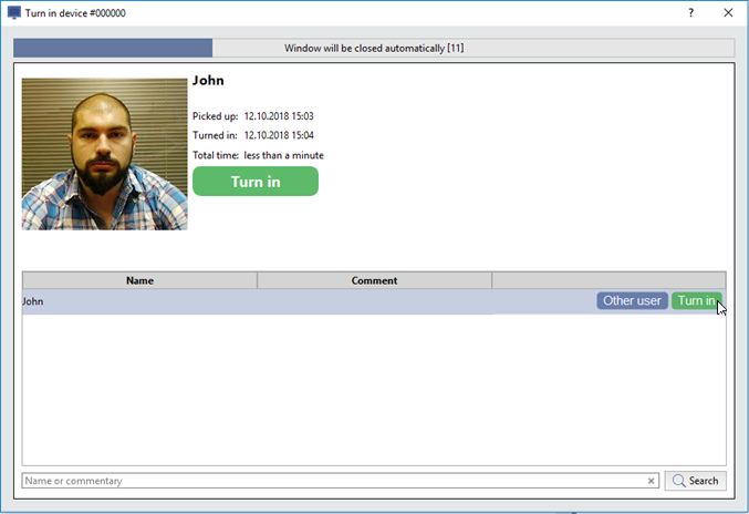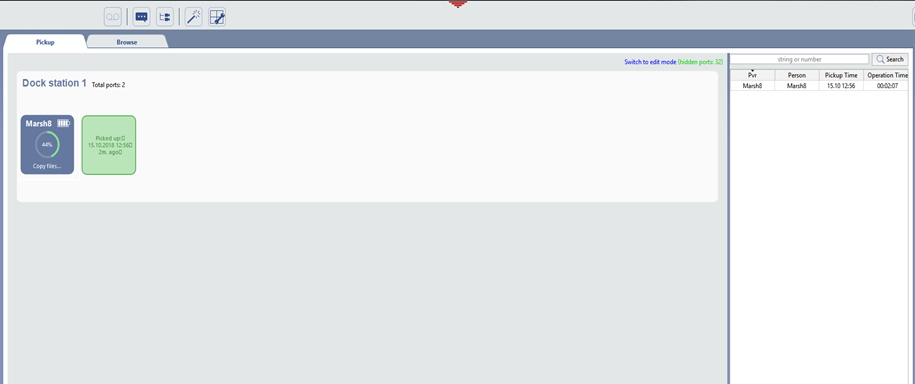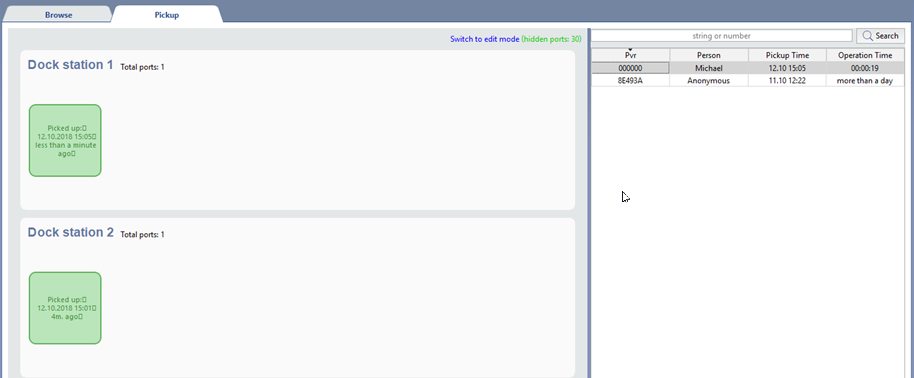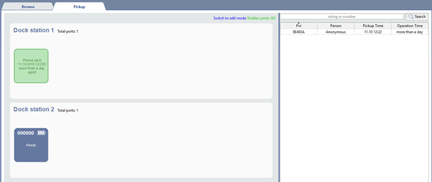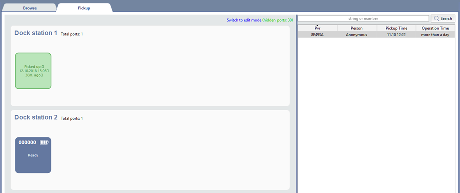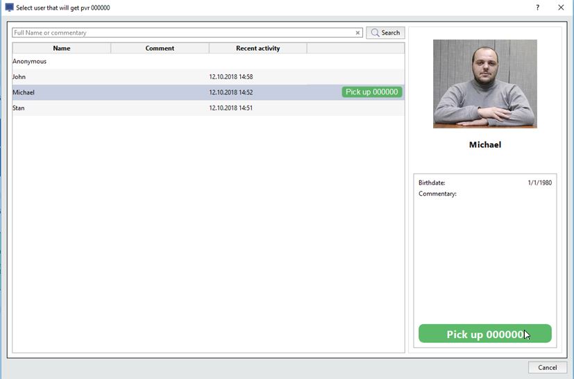 To activate the PVR pickup, disconnect it from the dock station. In the opened window select the required employee and click Pick up.