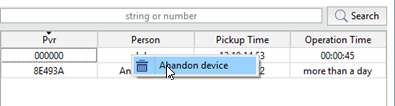 If a PVR has been picked up by mistake, you can remove the pickup record. To do this, right click and then select Abandon device.