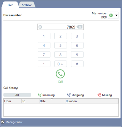 - Live - this tab lets you make calls via the built-in SIP phone and review the call log.