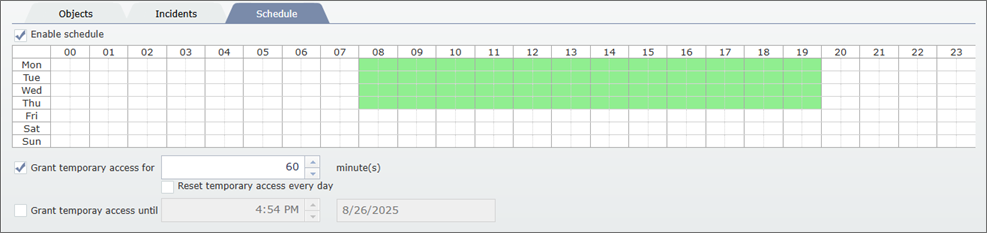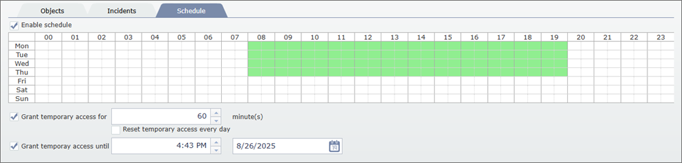 - In orders to specify the time periods, within which the role will be active, highlight them in the table and set Enable schedule flag.