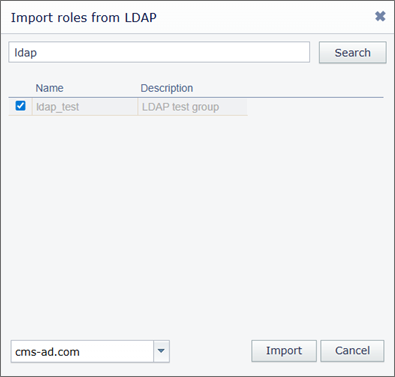 - Import roles from Active directory - add roles from Active Directory (LDAP).