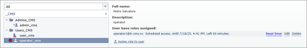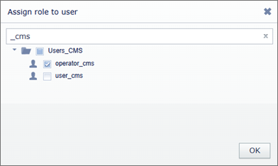 If you've created users you can assign roles to them. To do this, select the role in the list and click Assign to user. Select one or several users in the opened window and press OK to save settings.