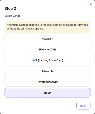 To play video from the device, TRASSIR CMS can remotely connect to it using a RTSP query.