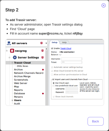 To connect the server to TRASSIR CMS, a LICENSE_CLOUD license is required on the server.