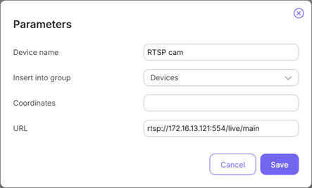 Press the button near the device name and select Parameters. The parameters' settings will open.
