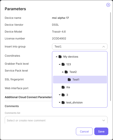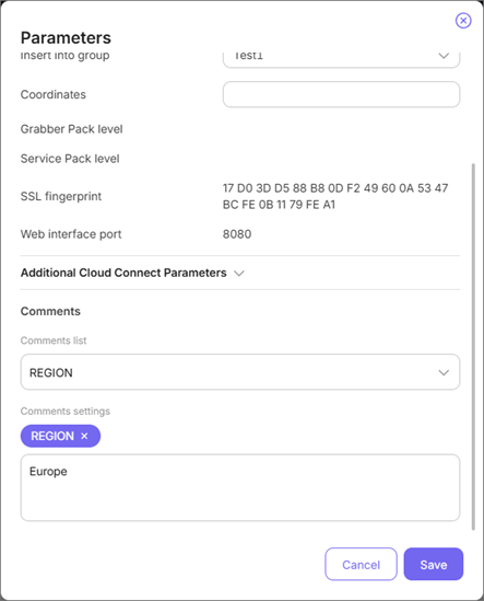 The Comments are the additional user specifications which can be used for more detailed device description. You can add physical address of the server installation or the phone number of the employee responsible for this server operation.