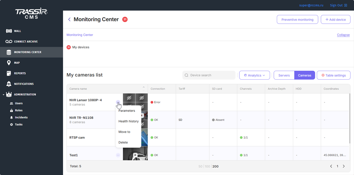 When working with a great number of devices, you can unite them into groups. It can be helpful for building a hierarchy of an organization or drawing complex reports. You can create the required groups on the Monitoring Center page. Then in the devices' parameters select the created group.