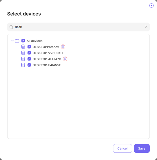 Enter a name for the notification. By default, all devices and channels are selected for notifications. In the Devices and channels field, click the All selected button to specify individual devices or channels for which you want to receive notifications.