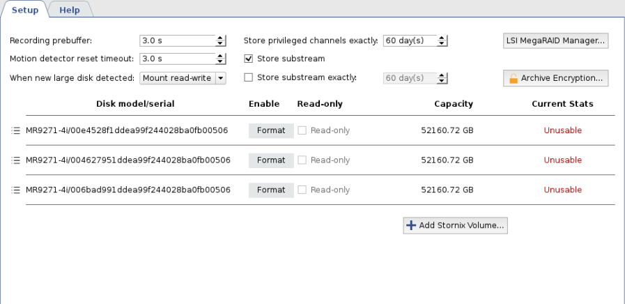 On TRASSIR OS: press the LSI MegaRAID Manager button on Server settings -> Archive.