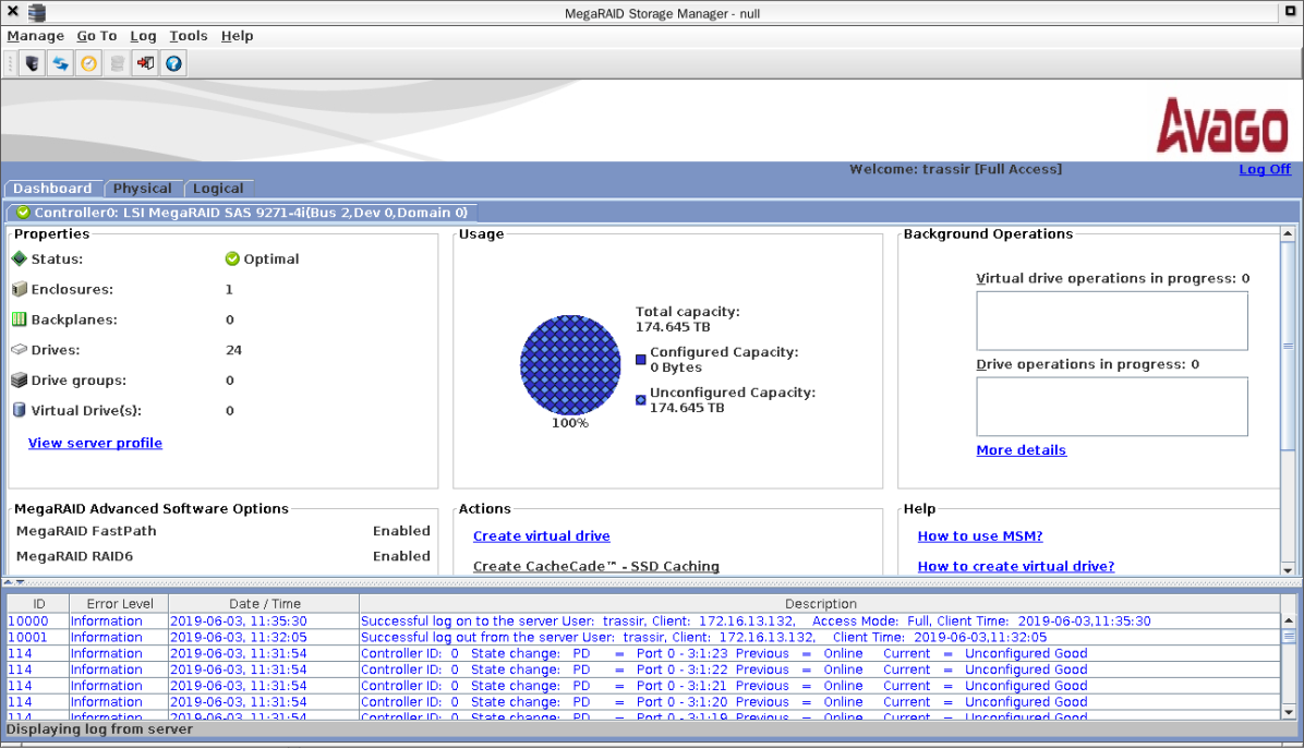 - On Windows: run the previously installed MegaRAID Storage Manager app.