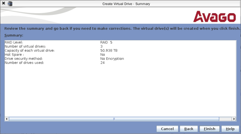 To complete the RAID creation, close the utility. Meanwhile, the exact amount of virtual drives, created in RAID, should appear on the Server settings -> Archive tab.