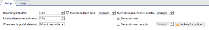 If the flag Store substream exactly is not enabled, the sub-stream archive depth is equal to the greatest depth of the main or privileged stream. The sub-stream archive will contain video from the channels of the devices on which the sub-stream recording is enabled (see Configuring device settings).