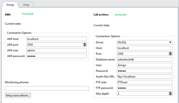Enter the following parameters to connect to Asterisk: