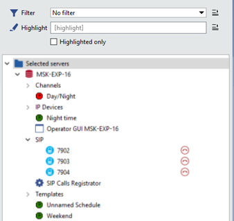 Specify SIP-phone numbers in Monitoring phones field and you will be able to trace their status in the object tree(CMS).