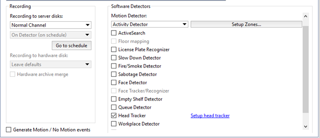 To activate the plugin go to the Channel settings to the Software detectors area and select Head Tracker. Click the Setup head tracker link to open the settings window.