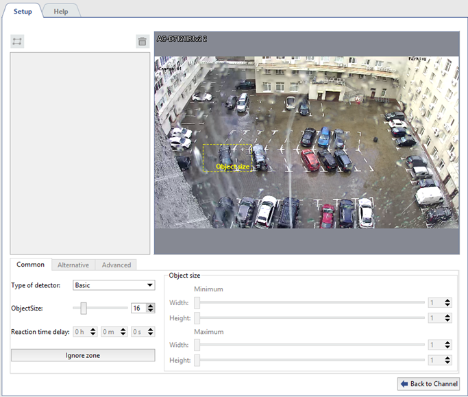 Using Object size settings determine an approximate size of the object, the detector will respond to.